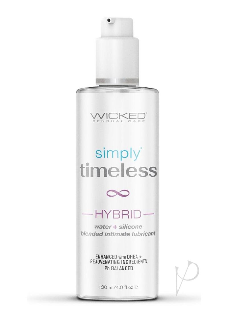 The simply Timeless line is formulated within the same parameters as the original simply collection - free from parabens, glycerin, and propylene glycol. From there we sourced the most beneficial supportive ingredients to provide even greater hydration and protection. Timeless Hybrid we took the both of best worlds and made it even better. Timeless Hybrid is a beautiful blend of a water based and silicone lube, further enriched with supportive ingredients, squalane (plant dreived), Vitamin E, Olive leaf extract, Sodium hyaluronate, DHEA.